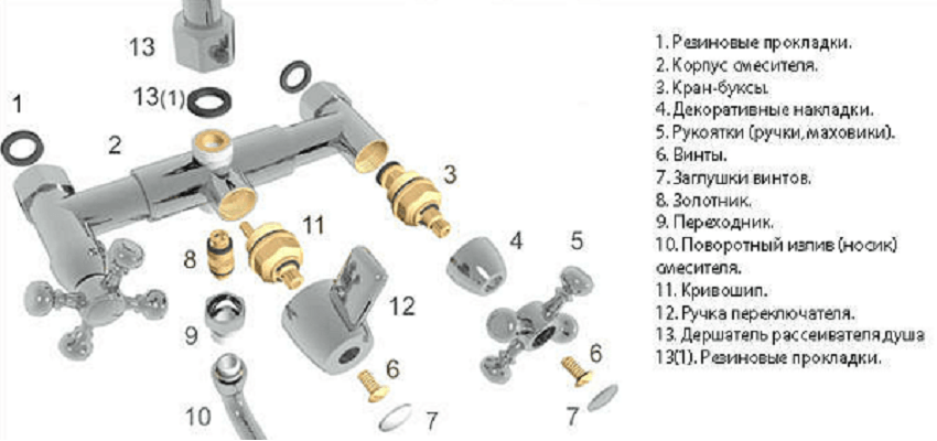 Конструкция смесителя для ванной
