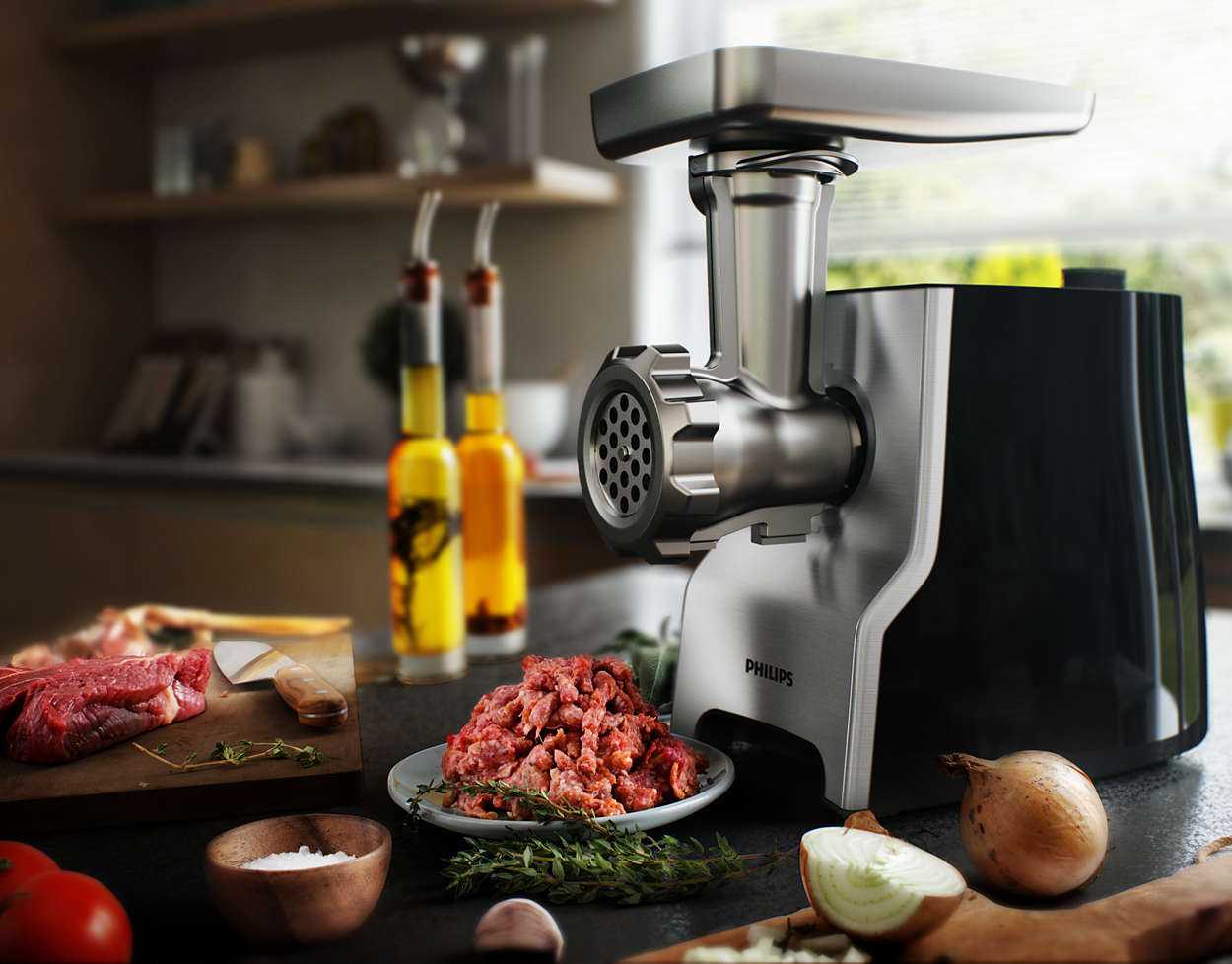 Помимо основной функции перемалывания мяса, электрическое устройство способно отжимать сок, шинковать овощи, сделать сосиски или придать форму тесту. Чтобы приготовить определенное блюдо, во время сборки необходимо выбрать и поставить подходящую насадку.