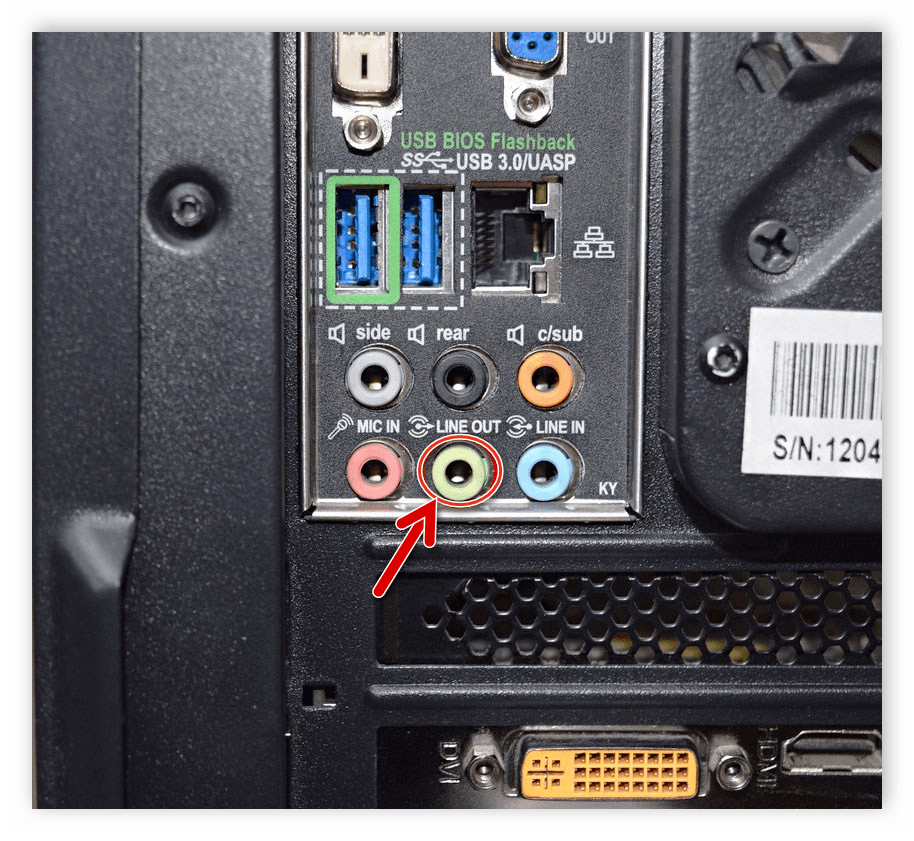 В первую очередь требуется выполнить подключение колонок к компьютеру. На боковой панели материнской платы присутствуют все необходимые разъемы для соединения
