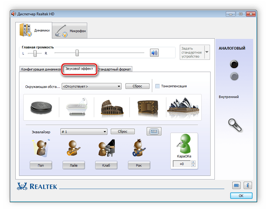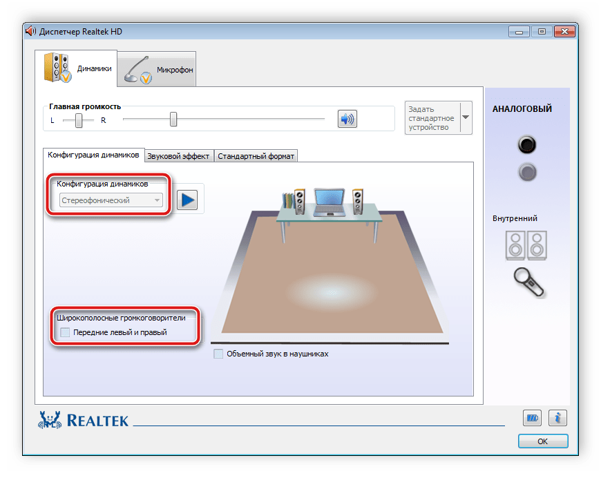 Большинство встроенных звуковых карт используют стандарт HD Audio. Самым распространенным пакетом программного обеспечения на данный момент является Realtek HD Audio. С помощью этого софта осуществляется настройка воспроизведения и записи. А выполнить это вручную можно так: