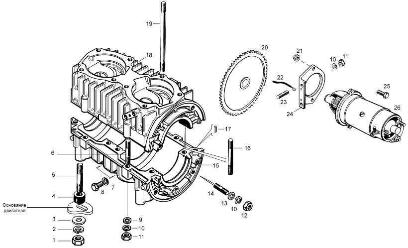 Картер двигателя с электростартером и шестерней запуска для снегоходов «Буран» СБ-640А, «Буран» СБ-640М, «Буран» СБ-640МД