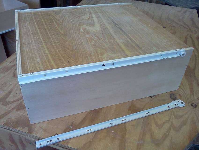 Если размер ящика будет на несколько миллиметров больше требуемого, то их выдвижение не будет плавным, и в скором времени направляющие выйдут из строя. Если сделать их на несколько миллиметров меньше, то ящики будут постоянно вылетать с полозьев. Глубина ящиков должна соответствовать размеру направляющих