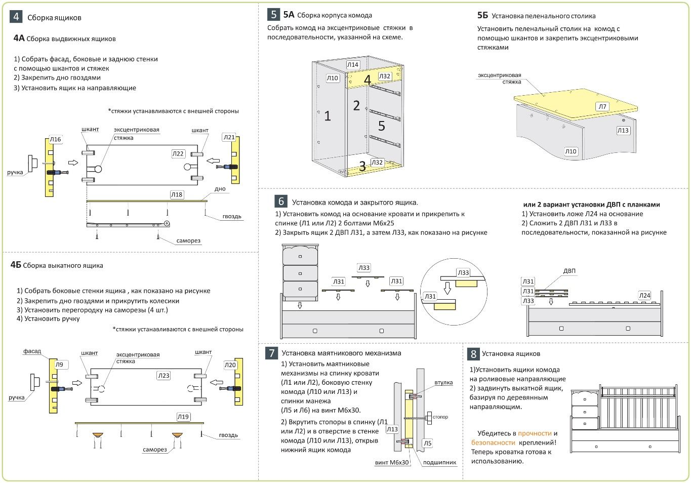 Полная пошаговая инструкция по сборке кроватки-трансформера
