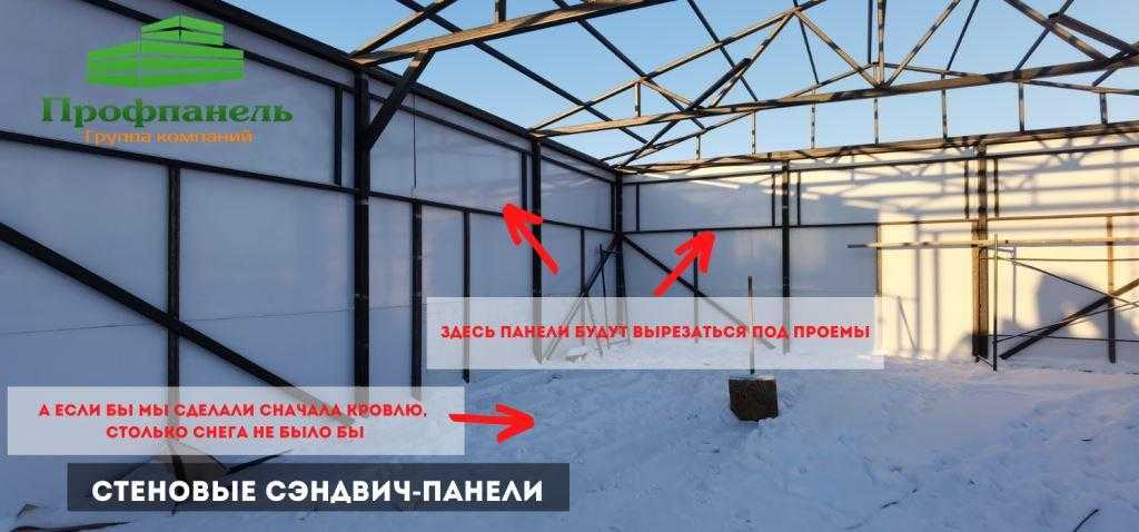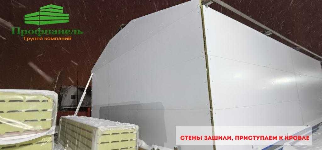 Монтаж стеновых сэндвич-панелей для строительства цеха из сэндвич-панелей 10х14.