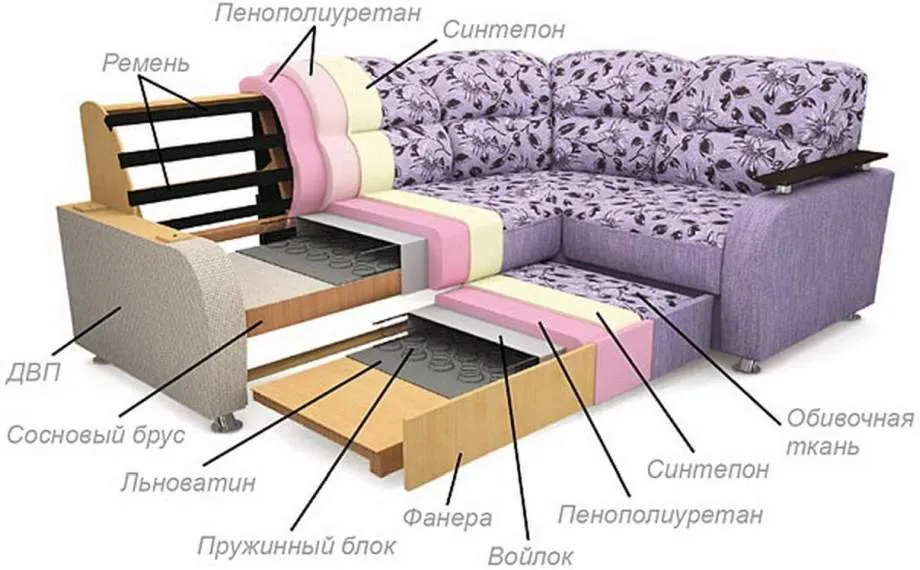 - Материалы для каркаса и спального места, обивку и наполнитель.