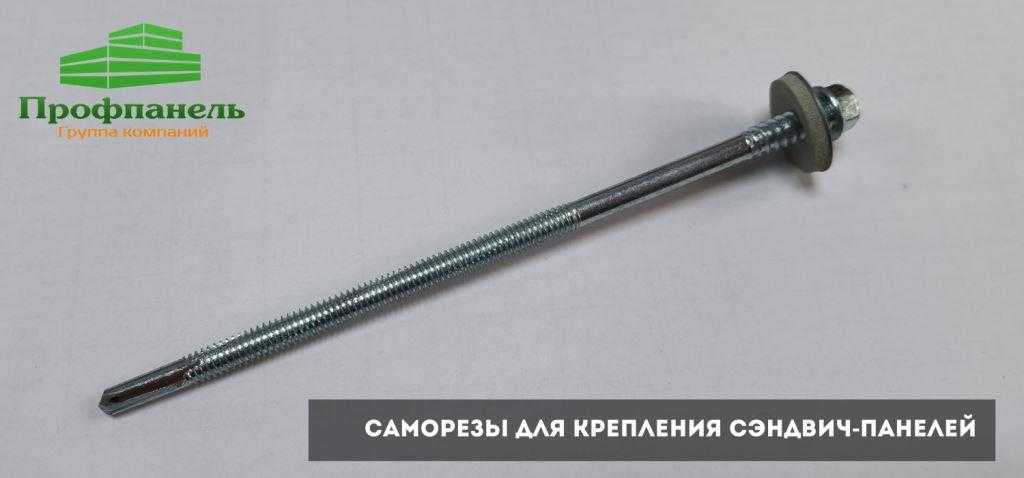 Для крепления стеновых панелей используется специальный крепеж, это удлиненные саморезы 2в1 со сверлом и резьбой на конце. Сверло сверлит панели и засверливается в профильную трубу, а затем завинчивается резьбой в прилегающую стенку. Такая конструкция позволяет сократить время на монтажные работы.