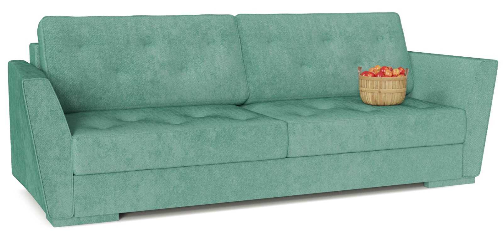 В раскрытом виде подлокотники становятся продолжением дивана, увеличивая пространство сидения. Механизм предельно простой, при этом удобный.