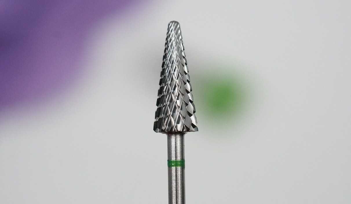 Насечки на фрезах для маникюра этого типа напоминают початок кукурузы. Верхняя часть насадки сужается и округляется. Подобным изделием можно выпиливать натуральный ноготь для придания нужной формы, снимать гель-лак и другие аналогичные материалы. Кукуруза должна быть довольно жёсткой, поэтому она делается из твёрдосплавного и керамического сырья.
