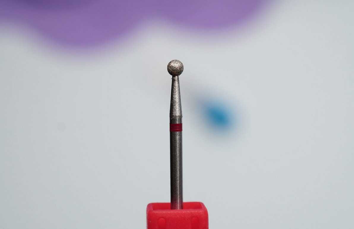 Шаровидная. Имеет небольшой шарик на конце и используется преимущественно для обработки трещин и удаления мозолистых наростов. Данная деталь позволяет производить деликатную обработку ороговений без повреждения ногтевой пластины.
