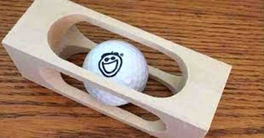 Головоломка из деревянного бруска и шарика от настольного тенниса. Брусок высверливается на сверлильном станке и отшлифовывается наждачной бумагой до гладкости. Шарик туда не может пролезть по размеру, но если опустить высверленный деревянный брусок в горячую воду и подержать там немного, дерево размягчится. Тогда нужно втиснуть туда шарик, слегка поднажав, и подождать, пока брусок остынет и высохнет. Теперь можно удивлять всех знакомых, пускай думают, как протиснуть туда шарик или как его оттуда вытащить.