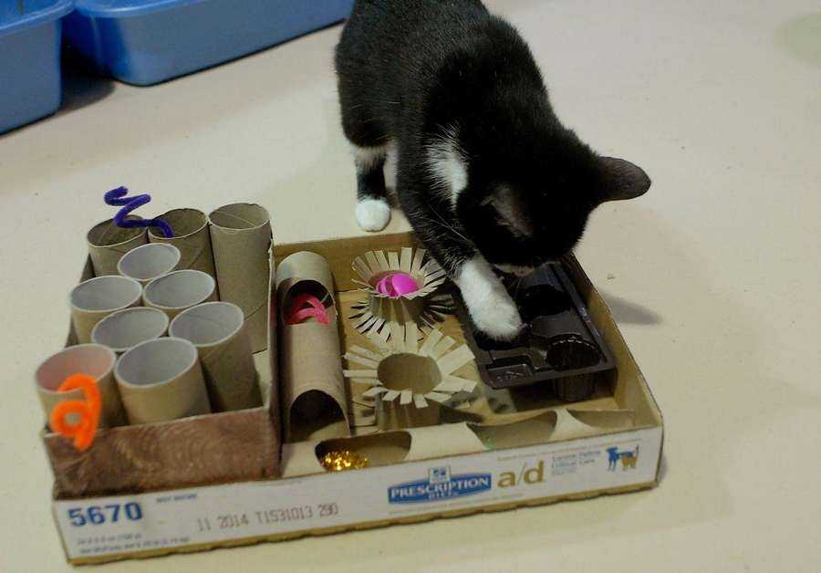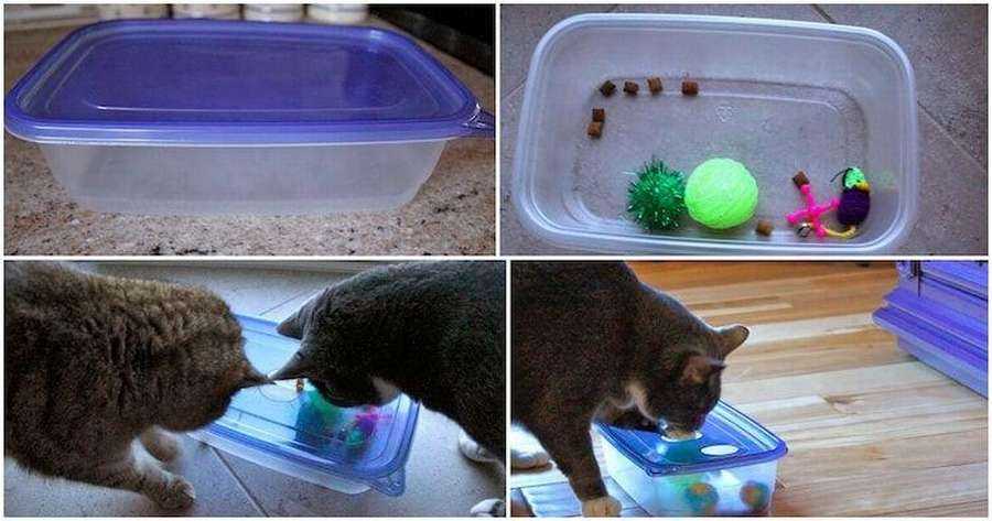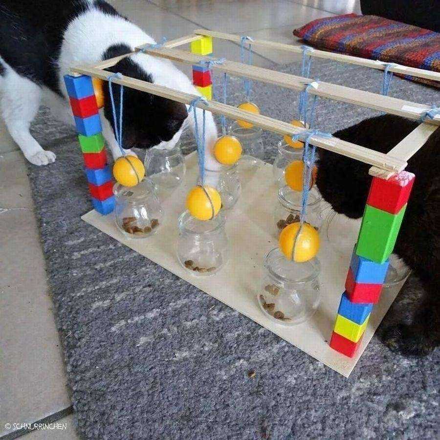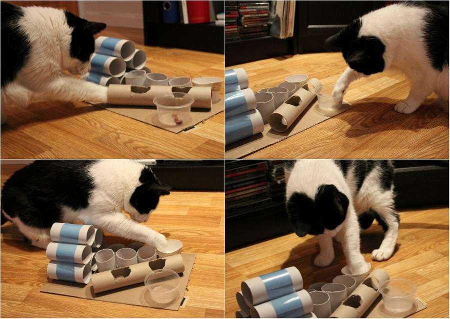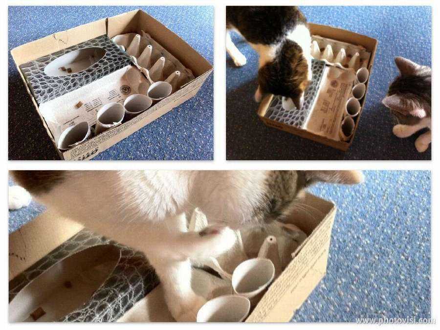 Чтобы вашему домашнему животному не было скучно, и он не набирал просто так лишний вес, сейчас придумывают разные пищевые головоломки своими руками, которые делают из разных подручных материалов. Это и разные коробки, втулки от туалетной бумаги, пластиковые бутылки и прочее, что может найтись под рукой. А вашему животному наверняка понравится такая игра.