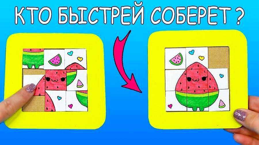 Игра головоломка из картона и бумаги может помочь занять не одного ребенка, целую компанию. На картонном основании на скорость собираются бумажные паззлы. Картинки можно рисовать самому, кто умеет, можно разрезать готовые из старой книжки или открытки.