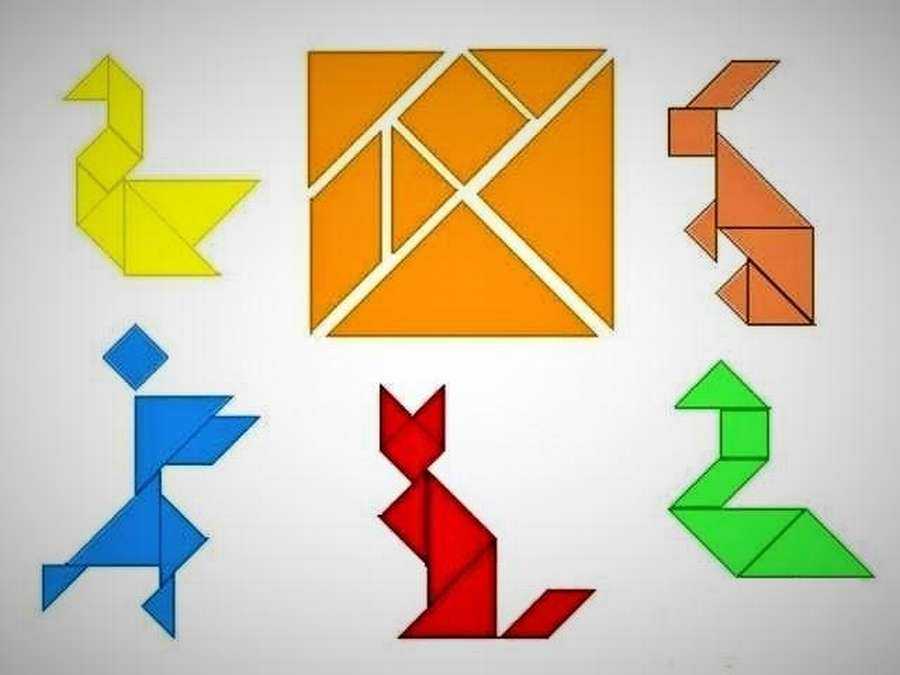 Головоломка из бумаги для детей своими руками. Сначала квадрат разрезается на части. Потом из этих частей дети должны сложить как можно большее количество фигур, не пользуясь ножницами или клеем.