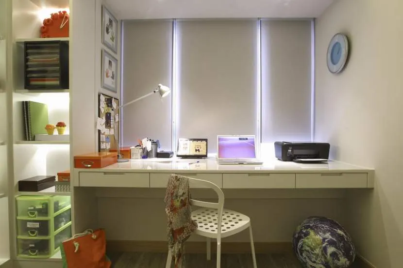 - Кабинет или другое рабочее пространство (например, гараж). Освещение должно быть ярким, функциональным, способствующим эффективной работе. Что касается цветовой температуры, то оптимальный диапазон – 3000-5000 К. Дополнительно рабочее место оборудуют светильником с высокой световой температурой; холодный свет утомляет глаза, поэтому его используют по необходимости.