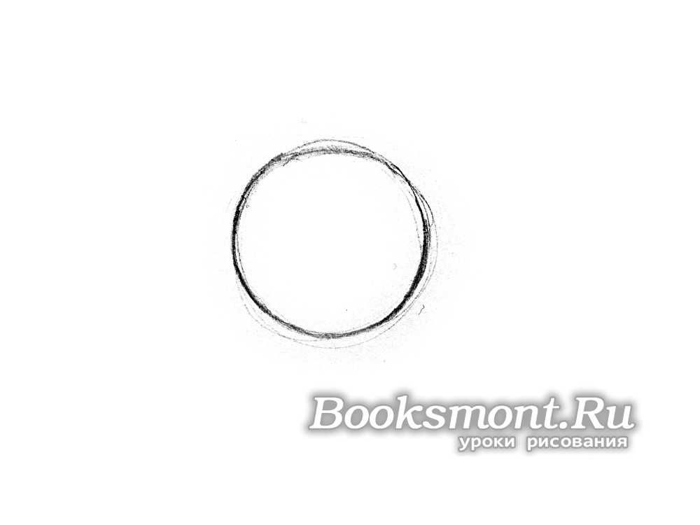 Для прорисовки всего лишь портрета новогоднего персонажа следует использовать в наброске простой графитный карандаш. Им наводим круг.