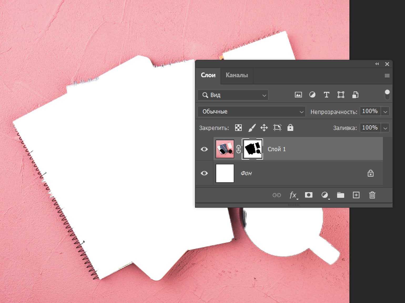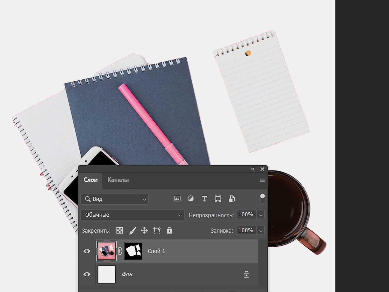 Если то же выделение инвертировать, при создании маски чёрным на ней будет закрашен фон. Он исчезнет, а предметы останутсяИзображение: Freepik / Skillbox Media