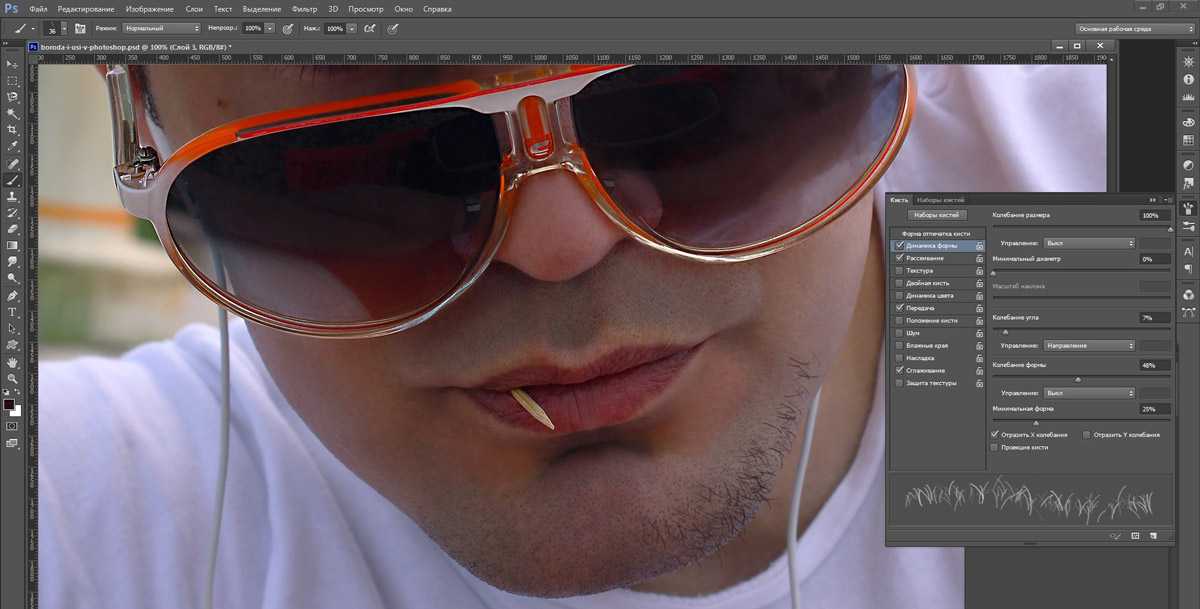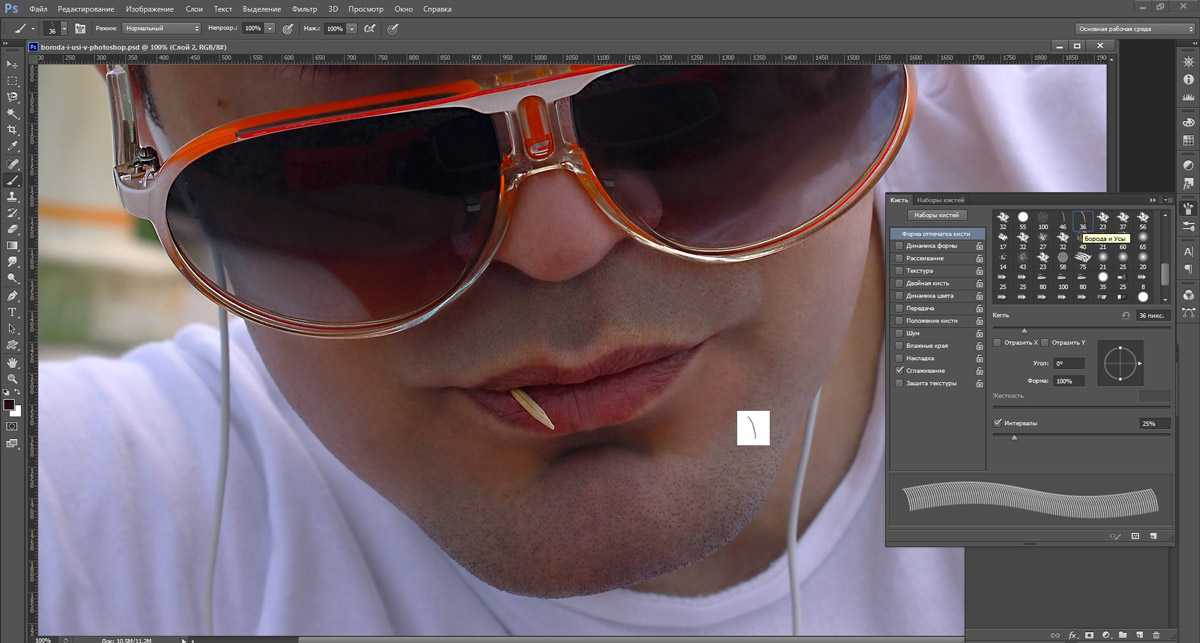 Чтобы рисовать бороду и усы в Photoshop, сначала нужно создать кисть, которая будет состоять из одного волоска. Это самый первый и самый важный момент. От качества кисти будет зависеть качество всей бороды и усов в финальном результате.