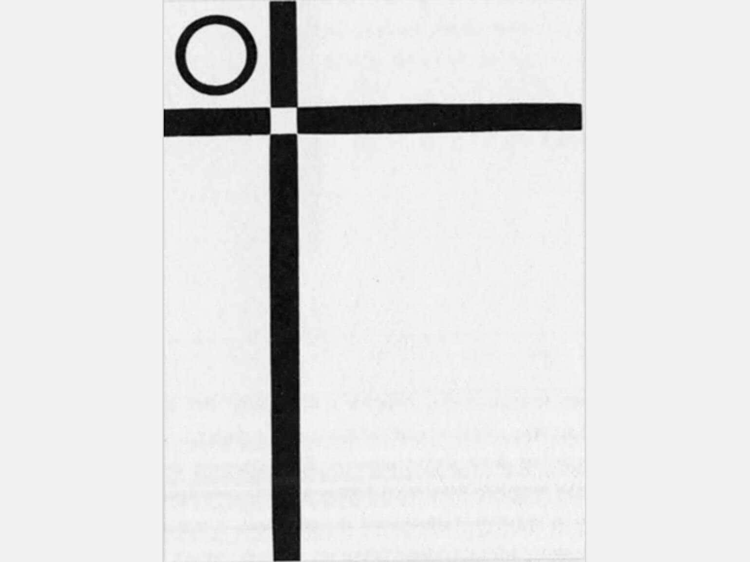 На этой схеме ещё одна ошибка — излишнее украшательство. Вместо круга здесь также часто встречается квадрат, поставленный на угол. Таким образом типографы хотят придать форме изысканности. Однако, по мнению Чихольда, эта схематическая форма не имеет ничего общего с конструктивной типографикой.