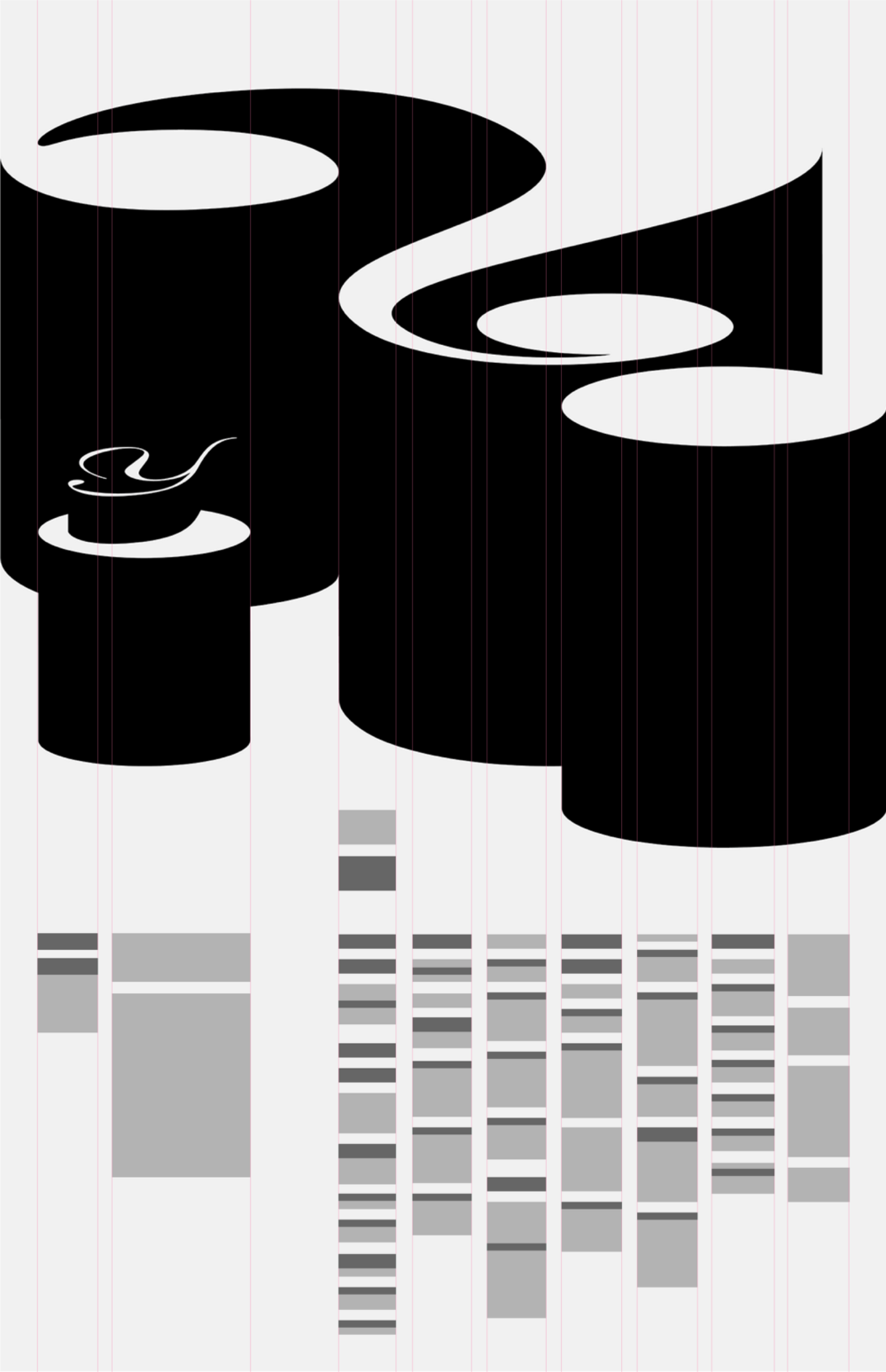 Если мы абстрагируемся и схематически изобразим этот дизайн, то увидим, как Свендсен позволяет вертикальным линиям, выведенным из 3D экструзии, установить сетку, к которой привязан вспомогательный текст. Такой подход привносит ощущение упорядоченности даже с учетом размашистых линий вопросительного знака — мы видим, что сам вопросительный знак совпадает со многими из тех линий, которые организуют нижнюю секцию. Данная структура приводит к общему знаменателю обе части дизайна, несмотря на огромную разницу в стиле, перспективе и масштабе. Постеры в модернистском стиле часто имеют ключевой графический элемент или типографику и привязанный к ней шрифт, но я не видела, чтобы кому-то удавалось связать главные и второстепенные элементы так, как это делает Свендсен.