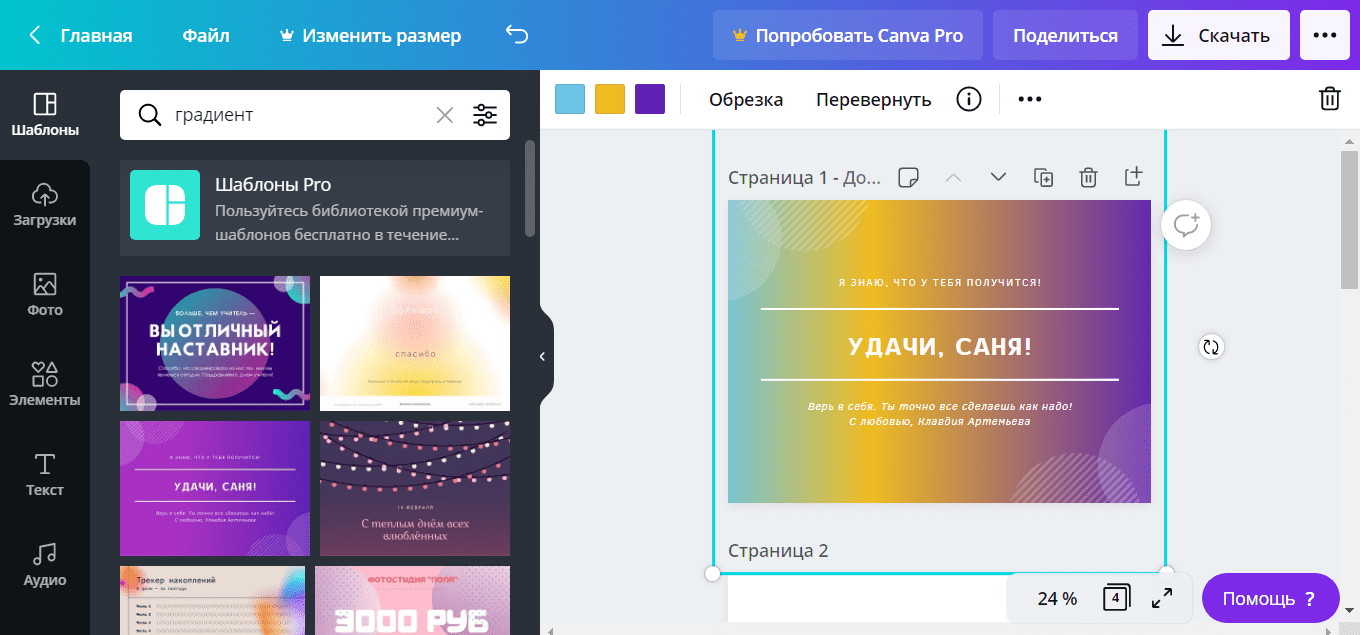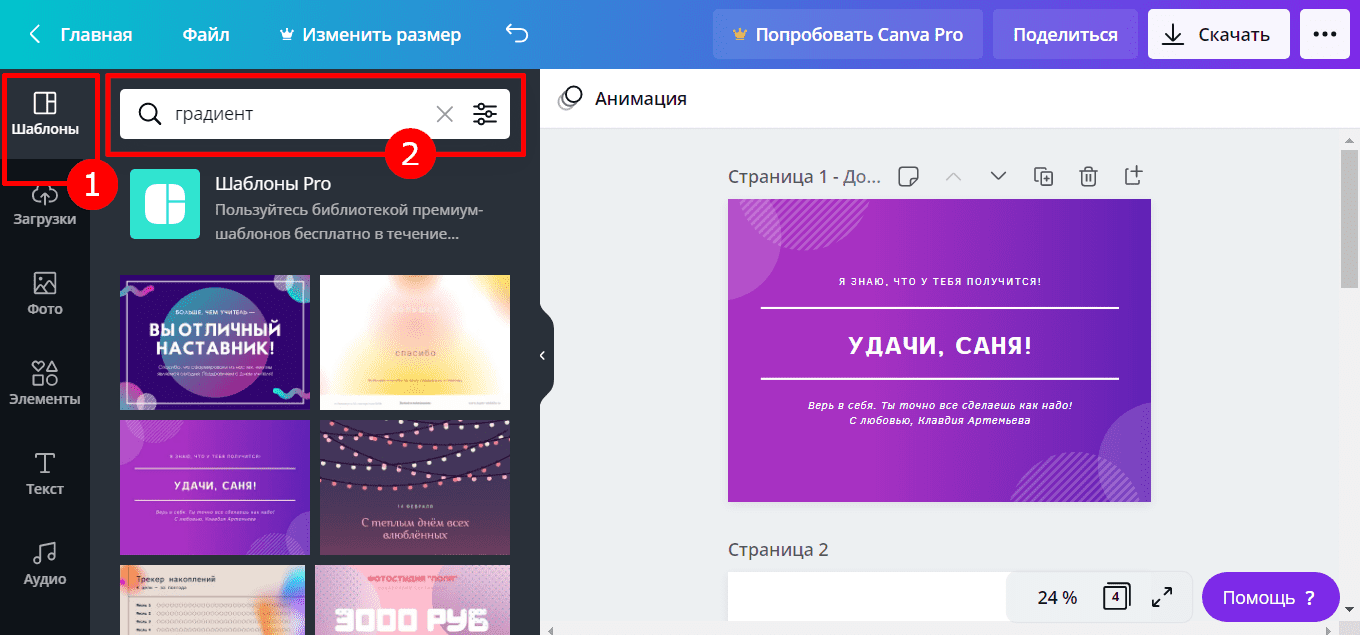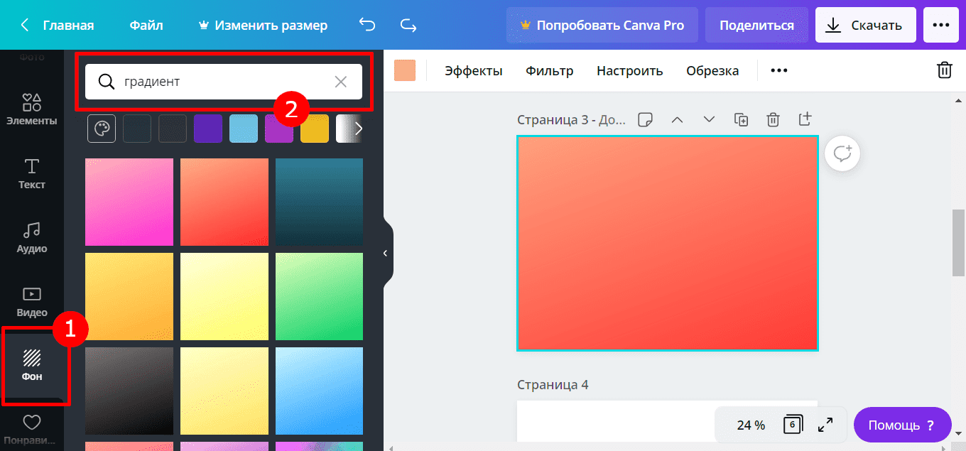Первый способ создать градиент в Канве – поработать с шаблонами.