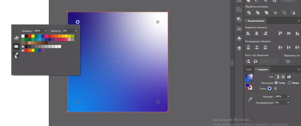 Чтобы создать произвольный градиент выберите объект и в панели Градиент выберите соответствующий пункт.