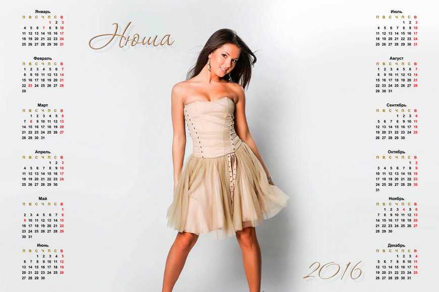 В крайнем случае это изображение можно будет использовать на половине листа, а на другую половину поместить сетку. Однако, наиболее эффектно смотрятся именно те календари, где месяцы гармонично вписаны в «пустое» место фонового изображения. Например, вот так:
