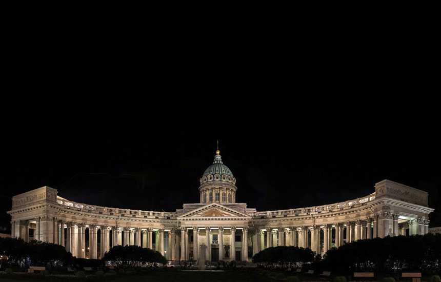 Признаюсь, я специально фотографировал Казанский собор так, чтобы можно было сделать из фотографии календарь. Наверняка вы уже догадались, что сетка будет расположена на пустом черном небе.