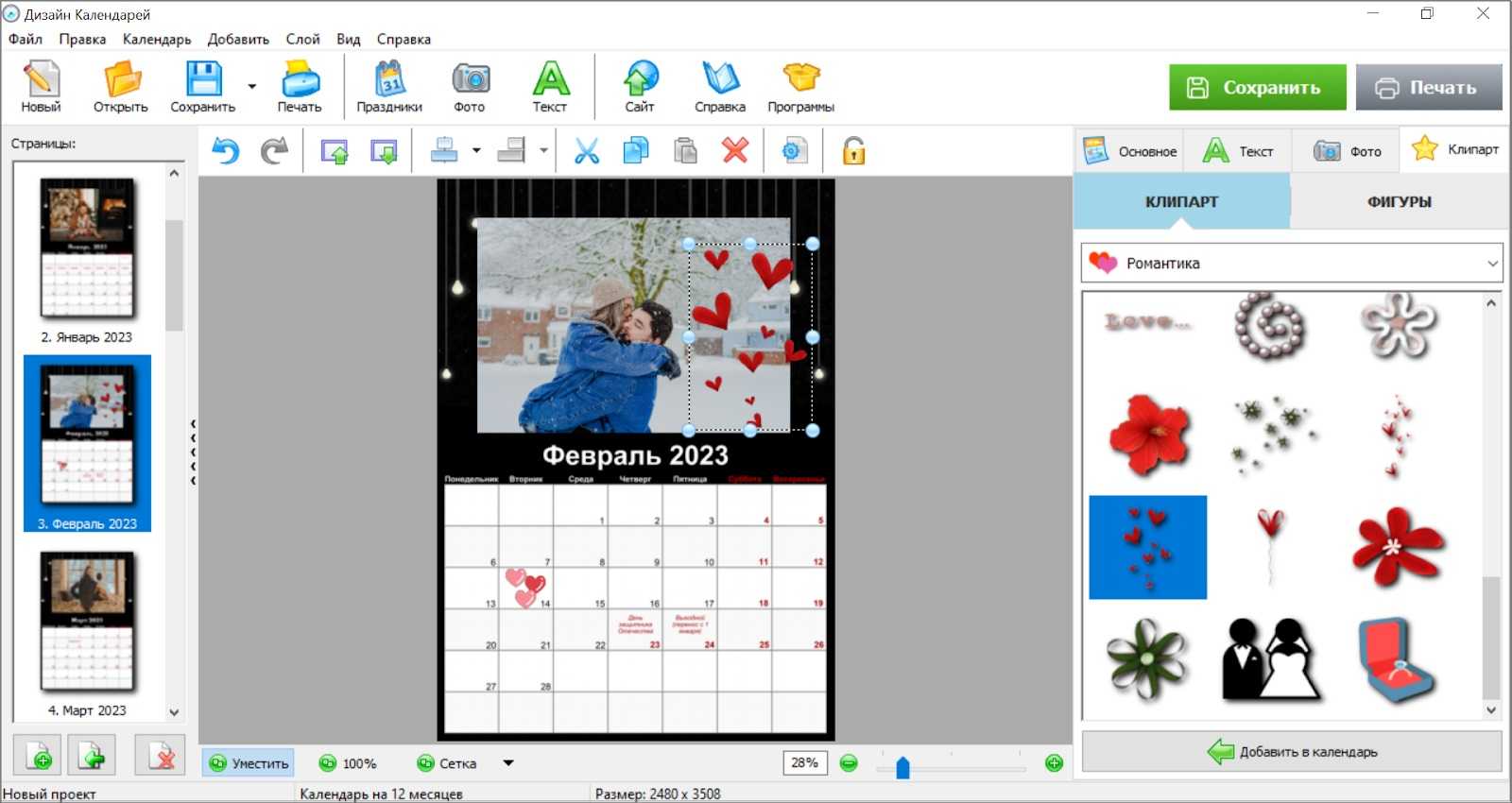 Дизайн Календарей – простая программа, в которой даже новичок может создать интересный проект. Вы быстро разберетесь с программой и сделаете уникальный календарь, который точно оценят друзья и близкие.