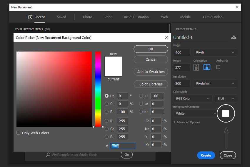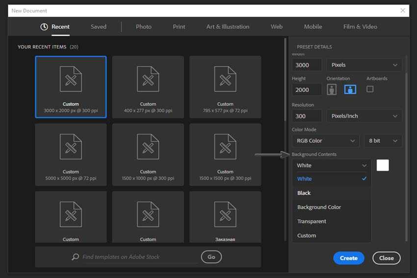 Обычно, когда вы создаете новый документ в Фотошоп, по умолчанию он заполняется белым цветом. Но в окне создания документа можно изменить цвет на любой другой. Находим параметр Background Contents (Содержимое фона) и устанавливаем нужный цвет.