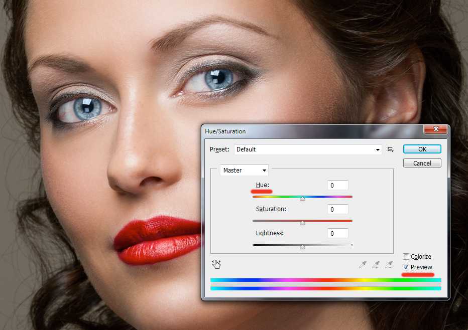 Не забывайте, что описанным методом мы изменяем только оттенок глаз. Сделать глаза более тёмными или светлыми, если вам это требуется, необходимо до того, как вы перейдете к раскрашиванию.
