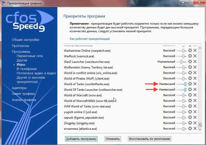 Для того, чтобы cfosspeed правильно определял и управлял трафиком игры Варфейс, необходимо настроить приоритет приложений. Для этого выполните следующие шаги: