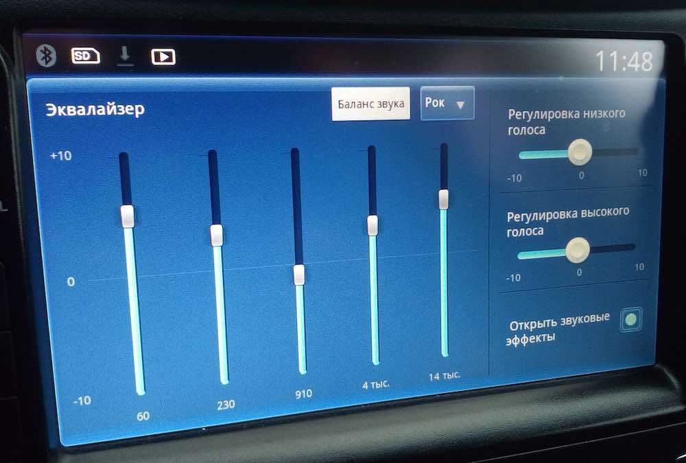 - Эквалайзер – Регулирует уровень низких и высоких частот.