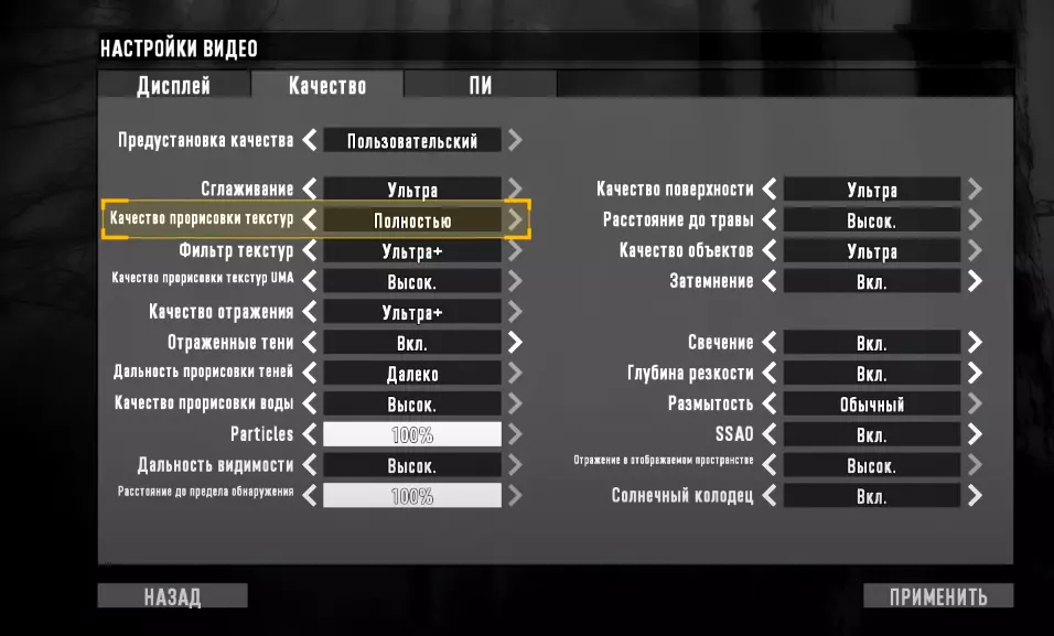 Качество прорисовки текстур – это еще одна важная настройка, но тут вы должны смотреть в сторону качества, ибо если вы поставите данный параметр на 1/8, то получите мыльную картинку, по графике напоминающую дум 2000-х годов (олды поймут). В общем, качество будет ужасным, так что лучше ставить качество на фулл.
