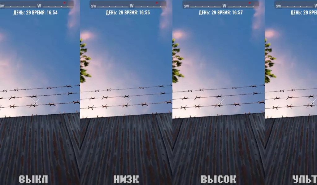 Обратите внимание на скрин выше, на колючую проволоку. При выключенном сглаживании заметна рябь «елочкой» на проволоке, тогда как на ультрах – картинка выглядит максимально цельной