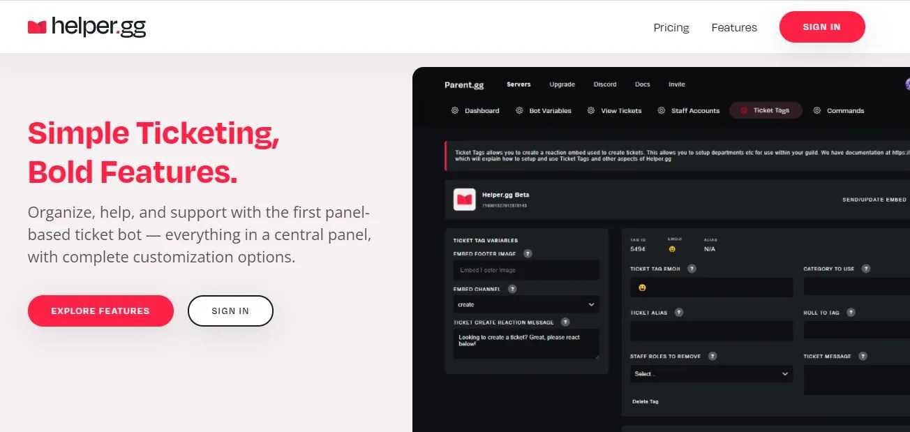 Helper.gg — это бот для создания тикетов, и он идеально подходит для предприятий, использующих систему тикетов, чтобы отвечать на запросы клиентов.