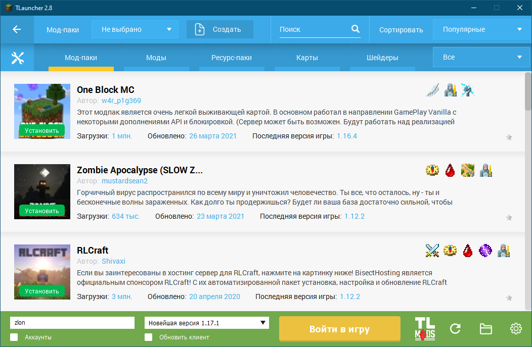 - В автоматическом режиме мы можем установить моды или мод-паки.