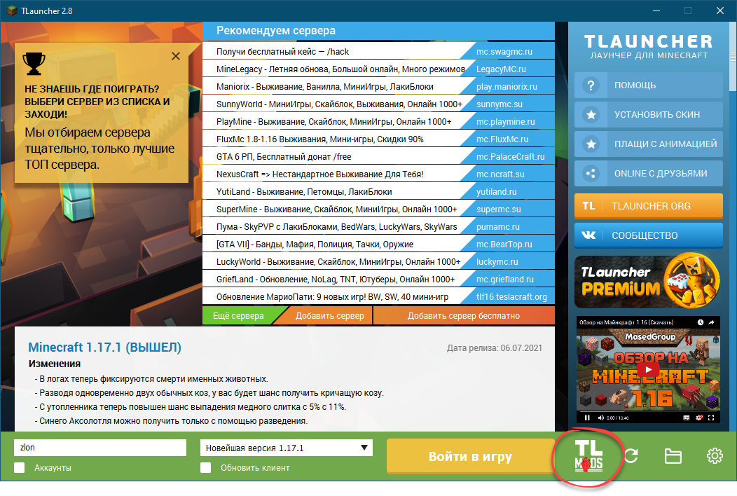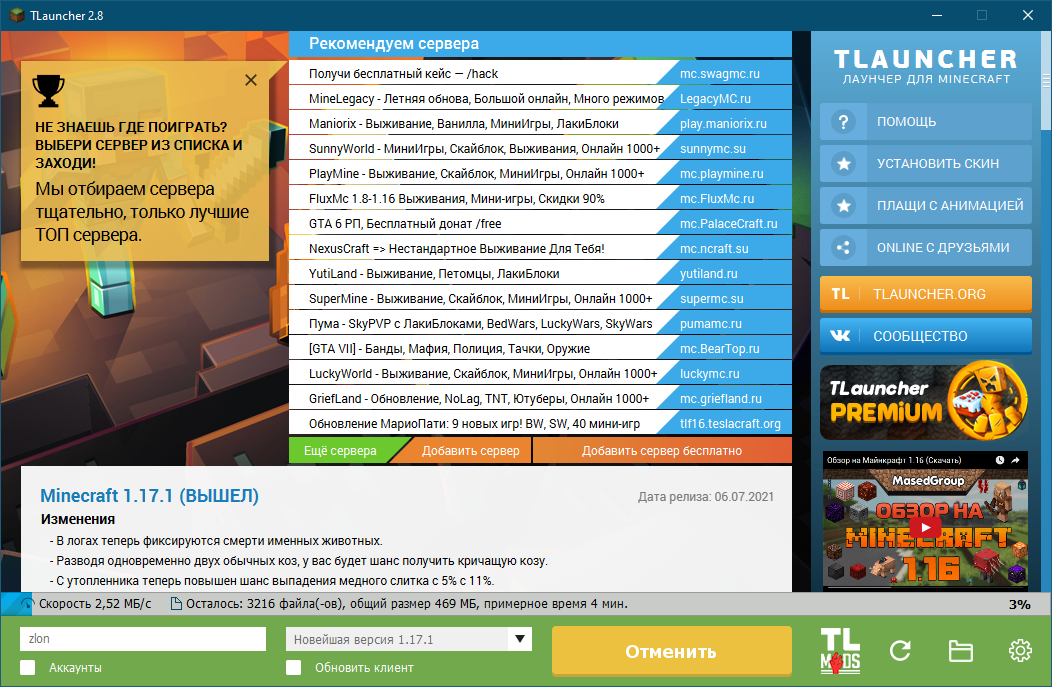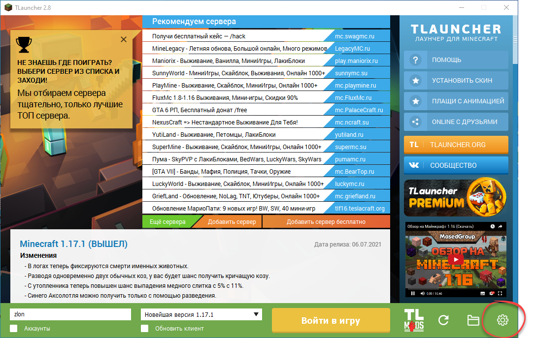 TLauncher Minecraft для ПК