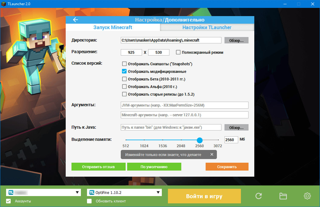 Настройка профиля и параметров игры в Майнкрафт Лаунчере