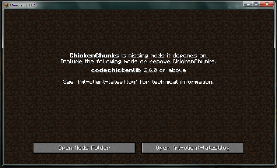 Решить эту проблему достаточно легко: нужно просто скачать недостающий мод заявленной в сообщении версии (в примере это CodeChickenLib 2.6.0).