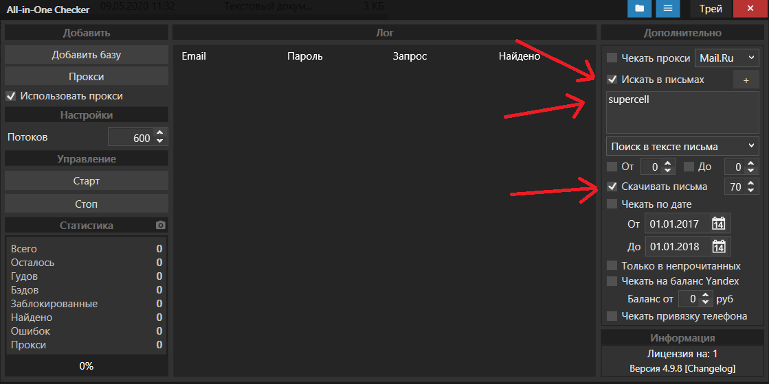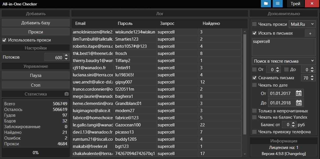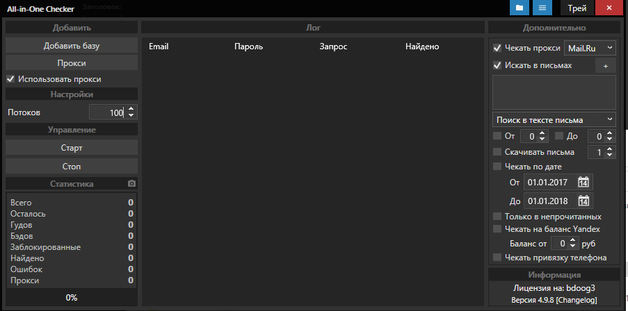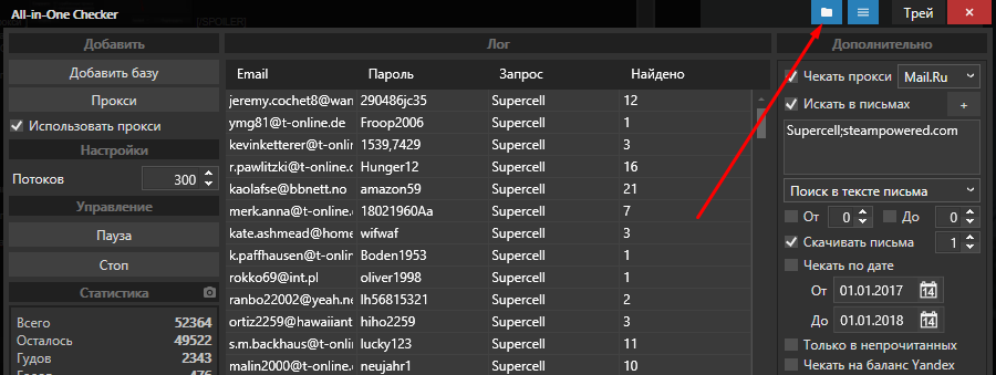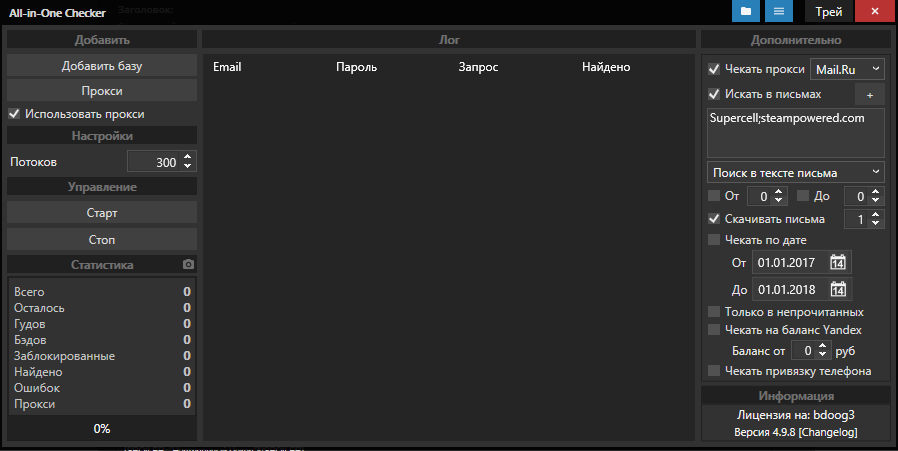 Давайте приступим к самому важному , что вообще делает программа » All-in-One Checker «. Он не чекает аккаунты именно, он чекает есть ли там письма от этого сервиса ( которого вы брутите )
