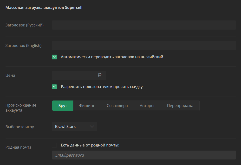 Проверять на работоспособность будем через маркет (https://lolz.guru/market/). Переходим в раздел «Массовая загрузка» и выбираем «Supercell».