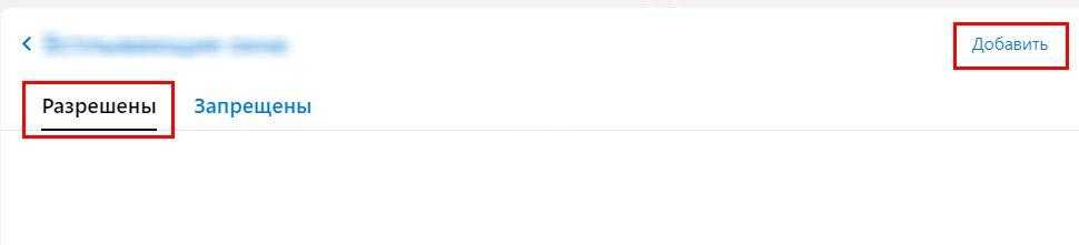 - Перейдите на вкладку Разрешен или Запрещен и правом верхнем углу окна нажмите Добавить.