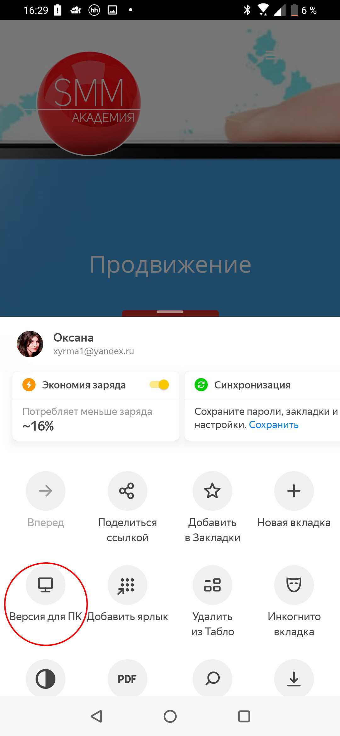 Переключиться на полную версию Yandex в приложении можно следующим образом: