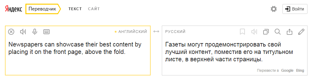 Вы можете переводить как короткие фразы, так и длинные тексты.
