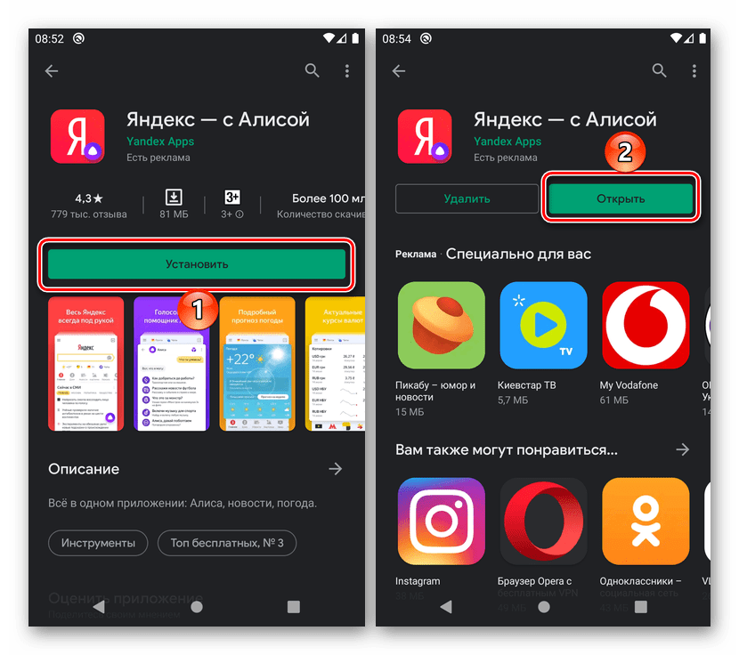 - Загрузите приложение «Яндекс с Алисой» из Google Play Market и после этого откройте его;