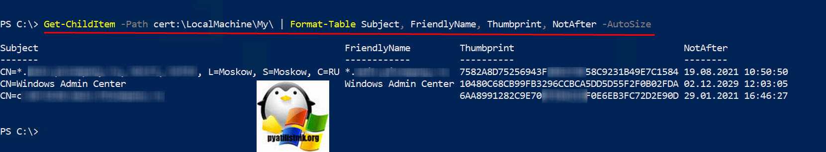В результате полезное еще видеть столбец NotAfter для понимания срока действия сертификата.