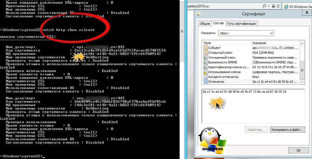 Как видите, данный метод еще быстрее, для примера я вам показал вывод командной строки и сертификат открытый в Internet Explore. Надеюсь вам помогла данная информация в поиске значения хэш у сертификата.