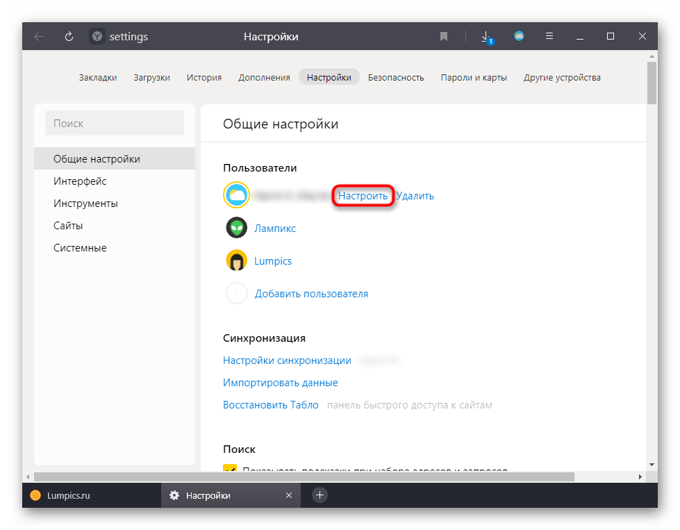 В первом же блоке наведите курсор на свой профиль и нажмите «Настроить».