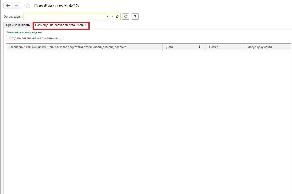 Рис.10. Вкладка «Возмещение расходов организации» в «1С:ЗКГУ 3.1»