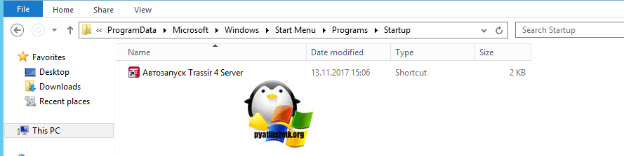 У вас откроется папка, в которой будут лежать ярлыки программ запускающихся при загрузке сервера, в моем примере, это «Автозапуск Trassir 4 Server».